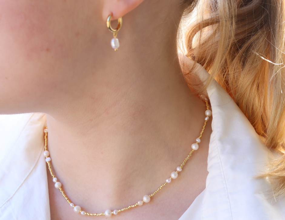 Unikt halskjede med perler av høy kvalitet + gullbelagt og rustfritt stål materiale