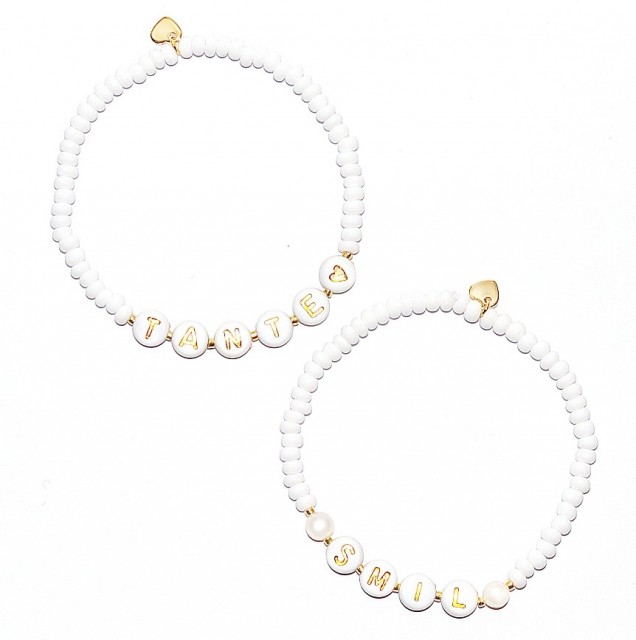 - Skriv inn hvilke tekst du ønsker til armbåndet. Eks: Tante, mamma, smil, mormor, farmor