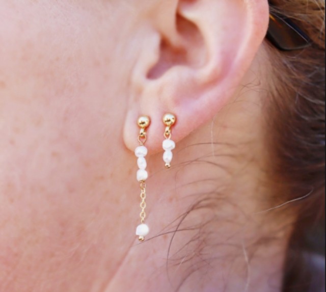 Dette er et unikt og praktfullt smykke som kan passe til alt! Øredobbene er laget med ferskvannsperler og gullbelagt materiale. Enkle å ta av og på og er lette og komfortable å bruke.